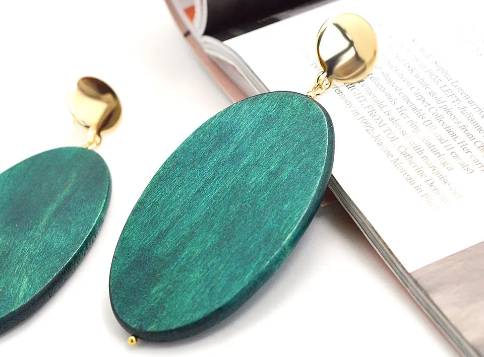Leiiy элегантные большие овальные зеленые натуральные деревянные серьги-слезки для женщин латунь Покрытие золотой цвет круг Висячие модные украшения