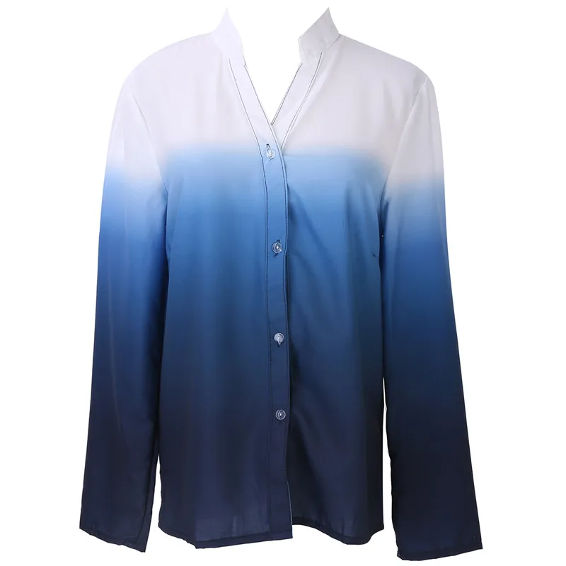 2017 градиентные цветные повседневные Летние Осенние рубашки с длинным рукавом, женские рубашки с глубоким v-образным вырезом, деловые офисные рубашки для женщин, Лидер продаж