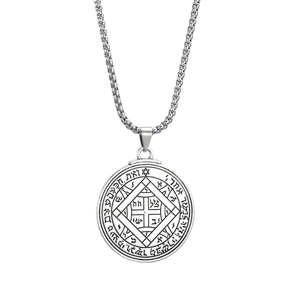Teamer винтажная пентаграмма Давид Звезда религиозный талисман Соломон тюлень ключ кулон ожерелье Wiccan ювелирные изделия двусторонняя круглая цепь Материал: цинковый сплав Вес: 9,1/14,25 г Размер: 30*35/38*44 мм Стиль: Винтаж/Мода/древний Тип: Wicca, ювелирные изделия Для: женские/мужские аксессуары По индивидуальному заказу: Да Цвет: античное серебро Больше вопросов, пожалуйста, свяжитесь с нами без колебаний :)