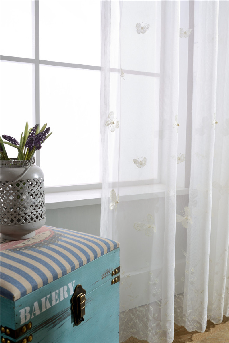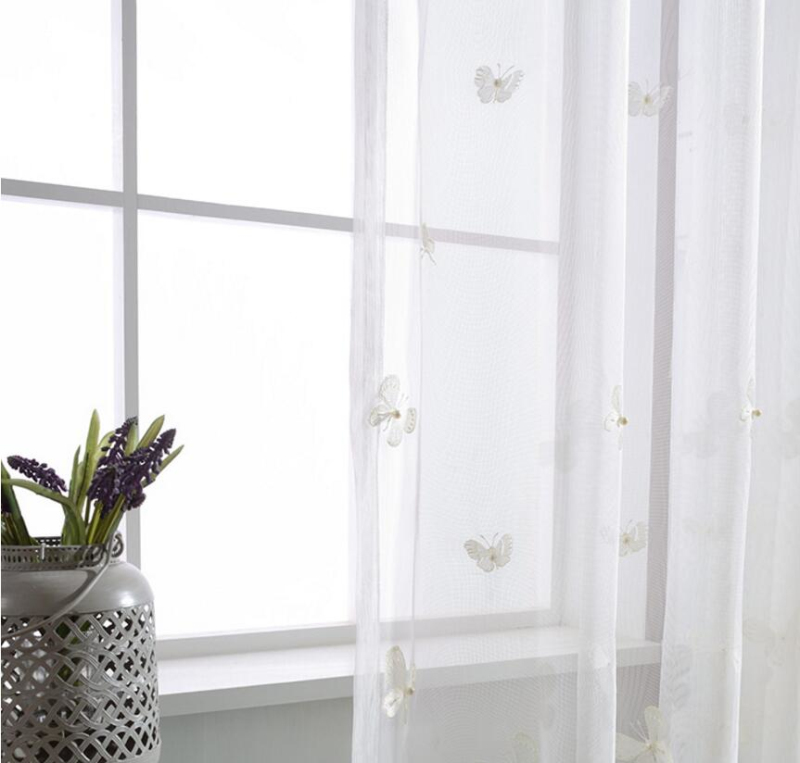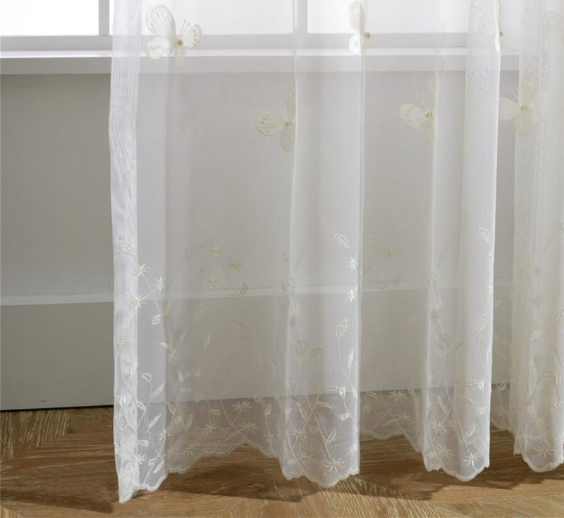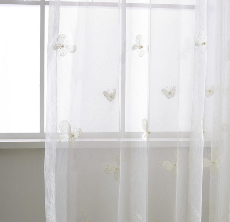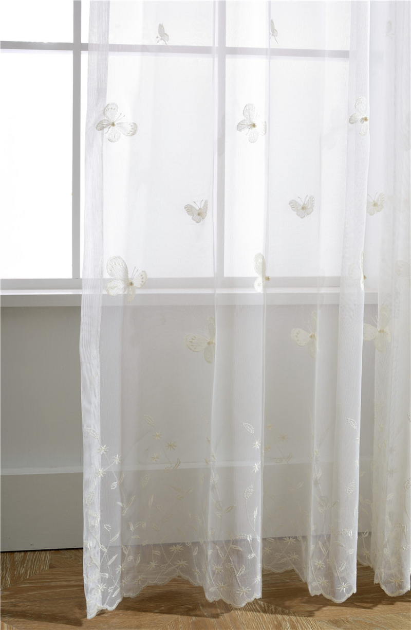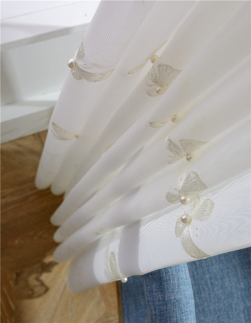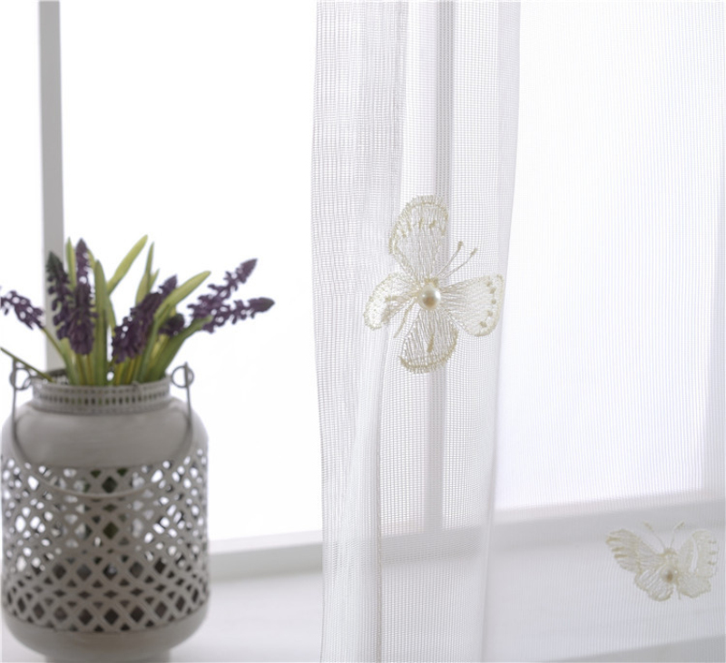 Белые занавески с бабочкой, жемчугом и вышивкой, вуаль, занавески на окно, современные занавески для гостиной, сетчатые тюлевые прозрачные Занавески Rideaux