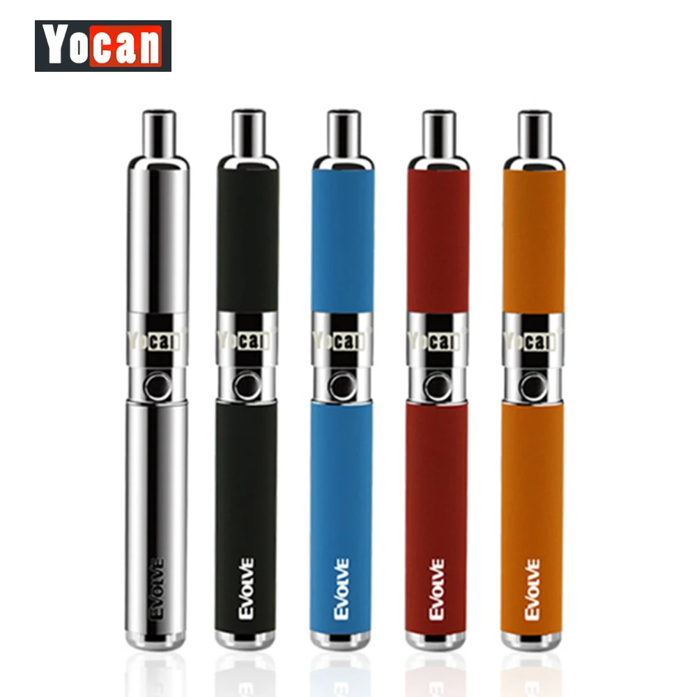 Yocan Evolve-D Сухой вапоризатор травы имеет уникальный дизайн в стиле ручки и блинную двойную катушку. Он принимает функциональный мундштук и емкость аккумулятора 650 мАч. Благодаря портативному и компактному размеру, он должен быть первым выбором для вас, чтобы преследовать вейпинга.