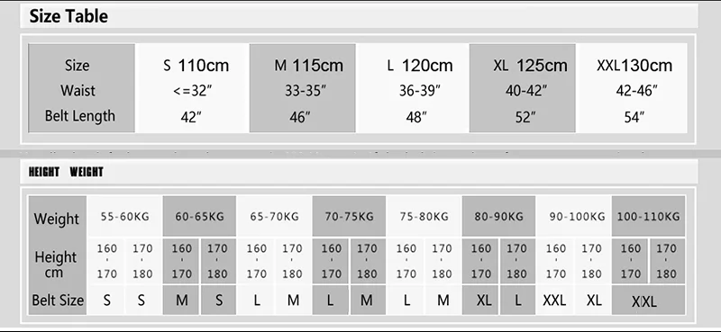 Длина ремня: S(110 cm)/ M(115 cm)/ L(120 cm)/ XL(125 cm)/ XXL(130 cm)