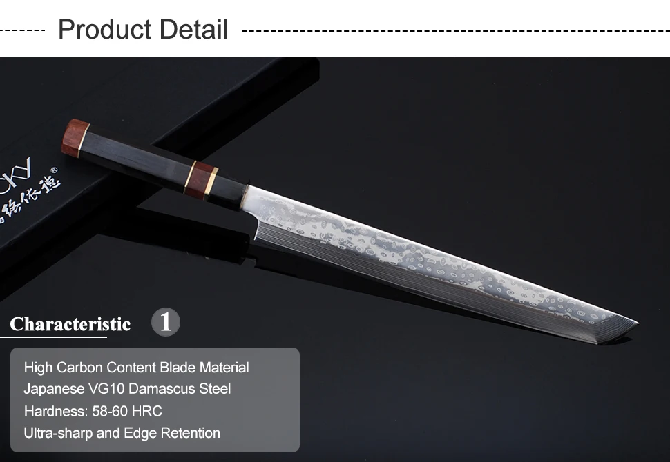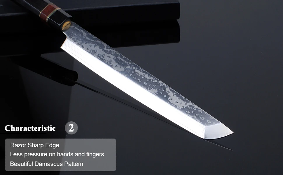 Исключительная резкость-Этот нож приносит вам сверхчеткость. Это лезвие скользит по мясу, лосося, рыбке и суши с минимальной нагрузкой.