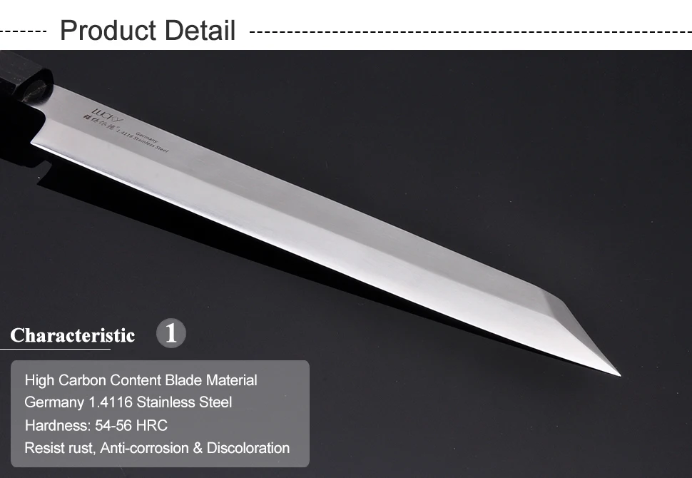Материал лезвия:Импортированная из Германии 1,4116 нержавеющая стальГермания ThyssenKrupp Ggroup,До высокого стандарта Germanny Din17400.