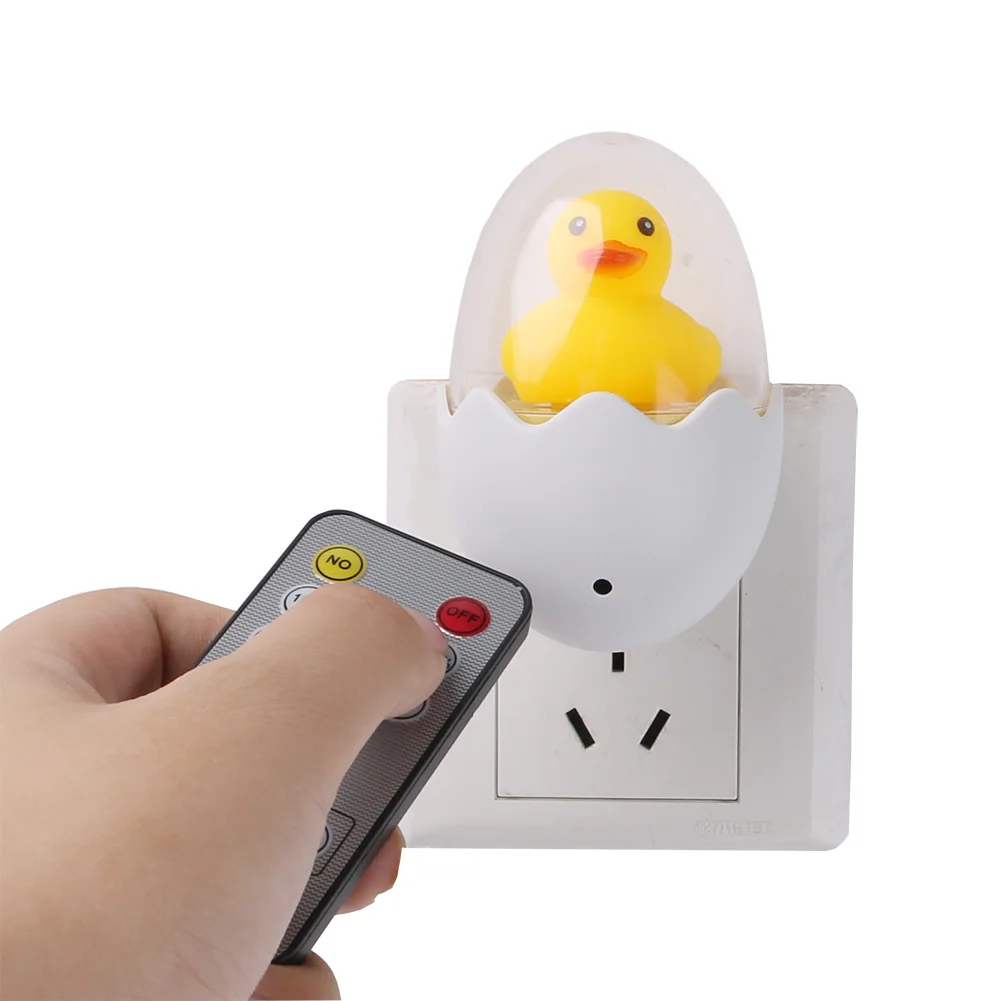Настенная лампа в розетку, США, ЕС, светодиодный ночник, светильник AC 110-220 В, светильник с дистанционным управлением, желтая утка, лампа для спальни, подарок для детей, милый