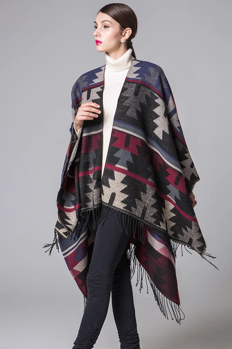 Cutudi 2017 Зима кисточки Шарфы пончо и накидки женские теплые мягкие имитируют кашемировые полосатые платки и обертывания Бохо вязаный шарф