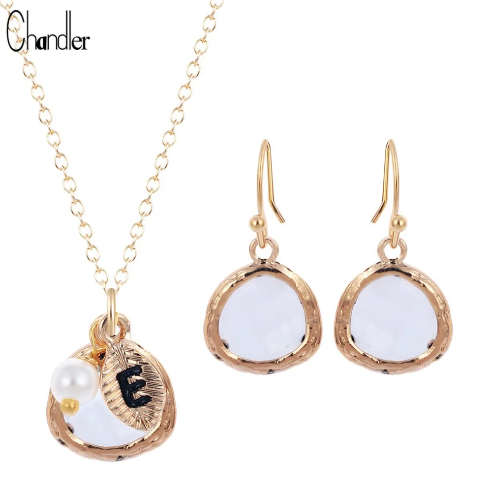 2017 Модные Ювелирные наборы Фиолетовый Натуральный Камень Серьги Хрустальное стекло начальное ожерелье Подружка невесты свадебное ожерелье для женщин подарок USD 0,50-1,99Долларов США/шт