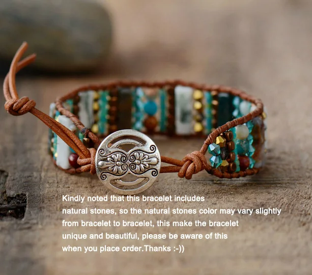 * Тип товара: уникальный браслет в стиле бохо * Материал: яшма, агат, натуральная кожа. Нержавеющая сталь * Техника изготовления: полностью ручная работа * Размеры: 6,5 дюйм (ов) 2 закрытия * Состояние товара: 100% новое и изысканное качество * Таможенное обслуживание: принимаем, пожалуйста, свяжитесь с нами для получения подробной информации перед размещением заказа.