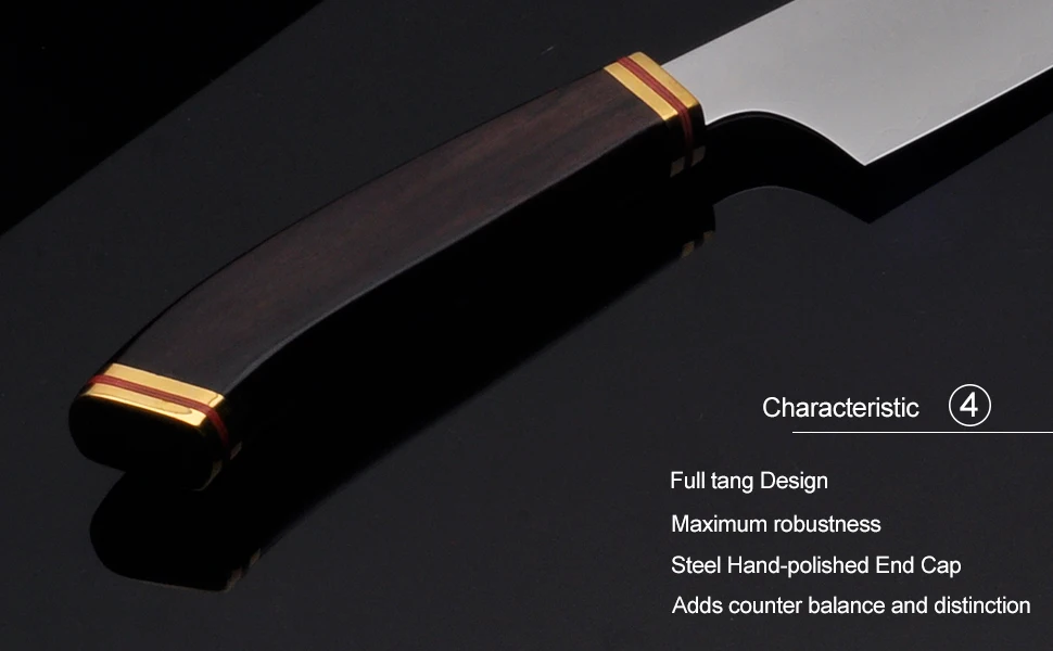 3.Использование японской технологии, уникальная окантовка и термическая обработка. Нож более острый и прочный.