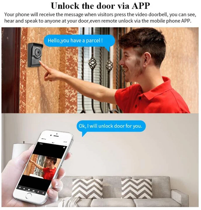 Мобильный телефон управляется, чтобы открыть дверь, когда есть посетитель у двери, непосредственно открыть дверь дома