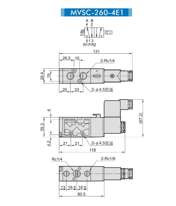Mindman пневматический Соленоидный клапан MVSC-260-4E1Изменение дизайна: цвет катушки (черный → серый)Ширина корпуса: 26 мм Размер порта: Rc1/4Рабочий диапазон давления: 0,2 ~ 0,8 МПаДоказательство давления: 1 МПаПоток: 871, 980 л/мин