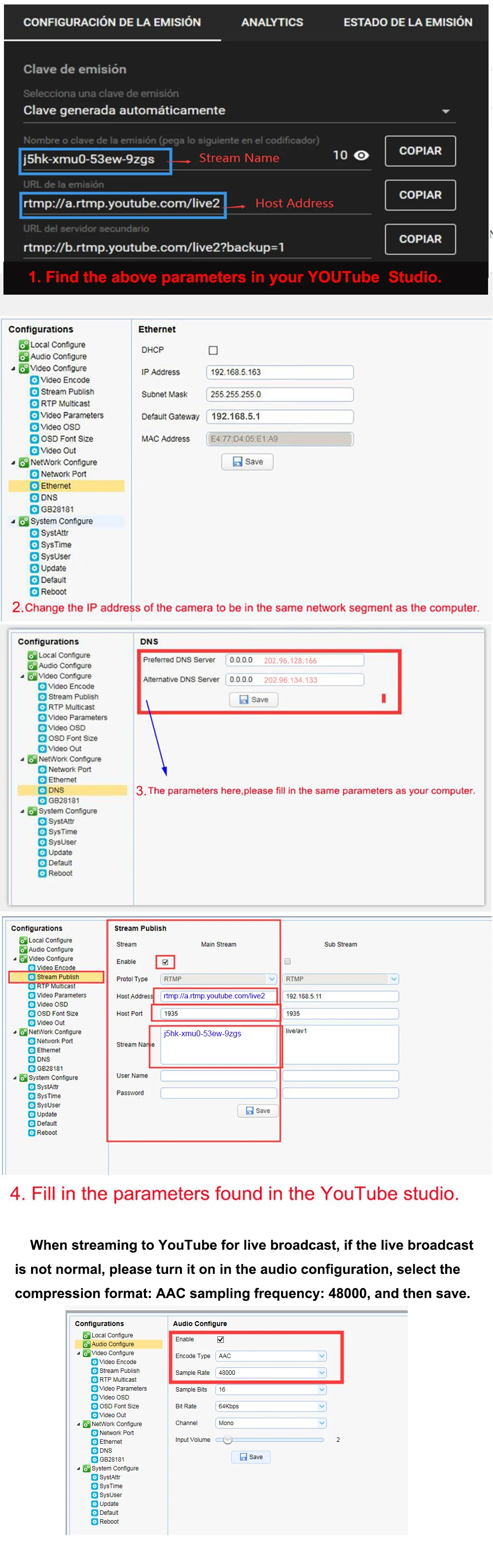 Поддержка 16000, 32000, 44100, 48000 частоты выборки и поддержка AAC, MP3, PCM аудио кодирования.