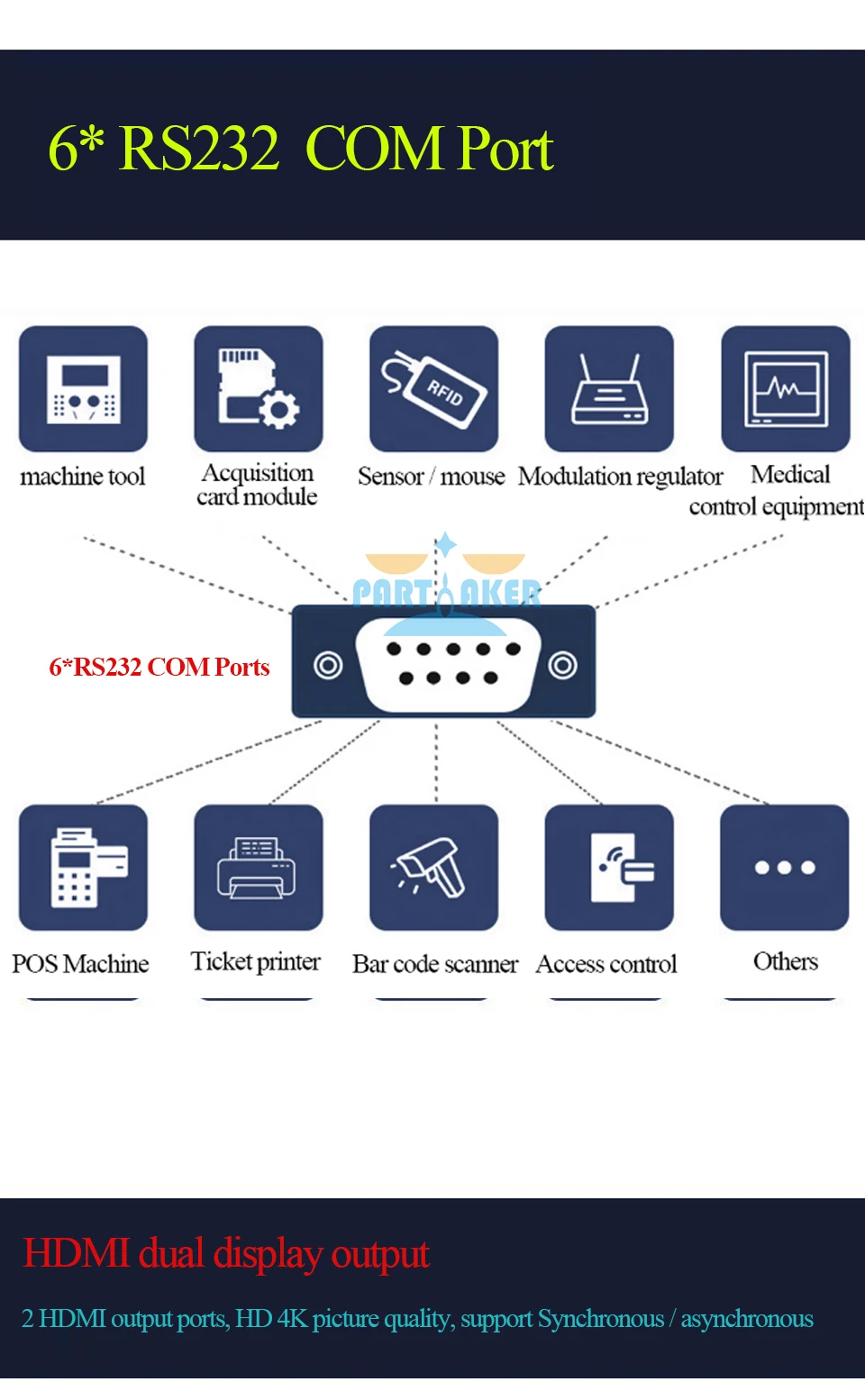 Интерфейс IO | Последовательные порты | 6 * RS232 9 Pin COM порт | ||