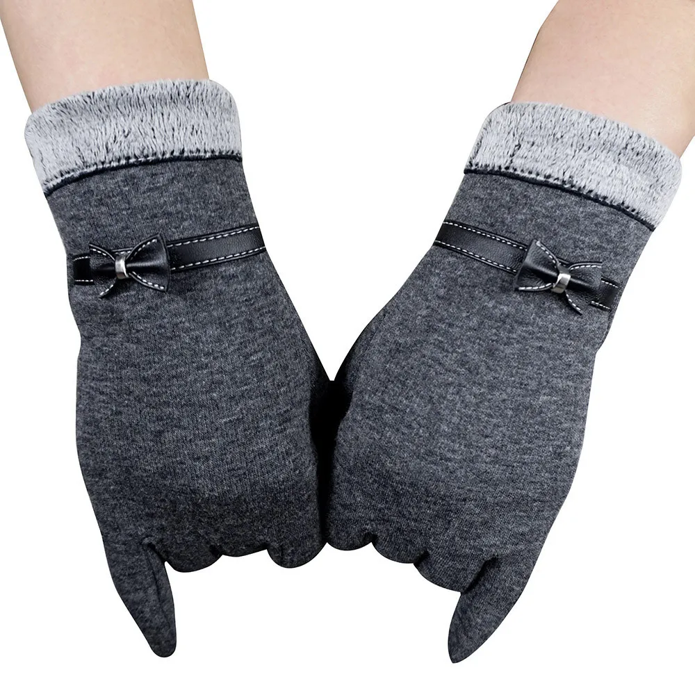 Женские зимние теплые меховые перчатки с бантиком, бархатные перчатки с сенсорным экраном