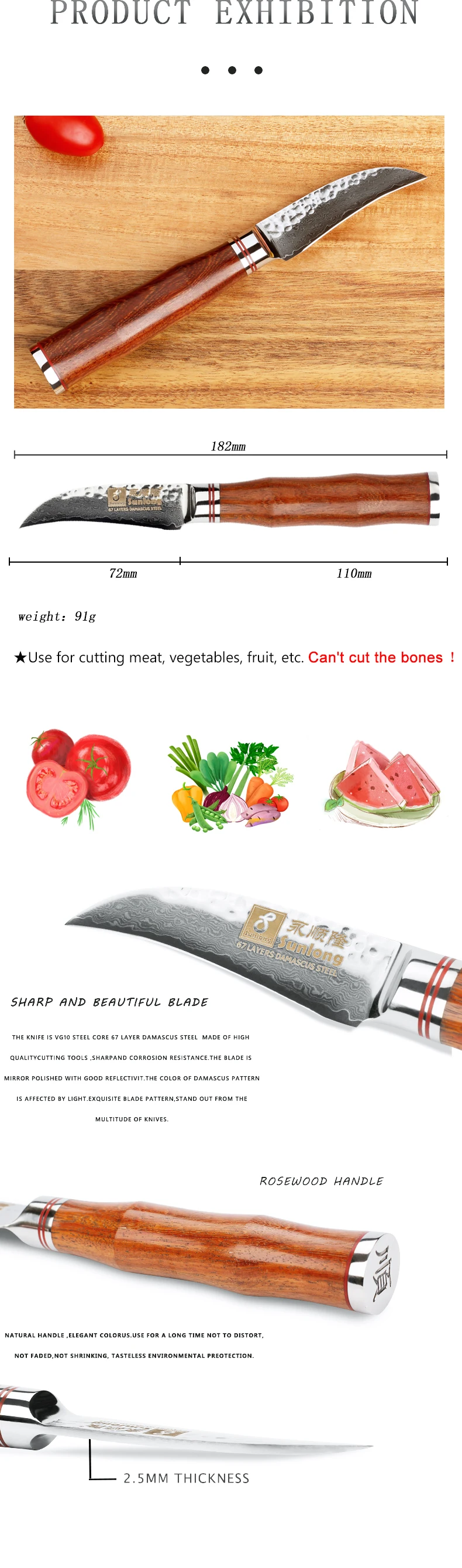 Sunlong пилинг нож 3 дюйма фруктовые ножи японский VG10 молоток Дамасская сталь нож для очистки овощей Палисандр Ручка