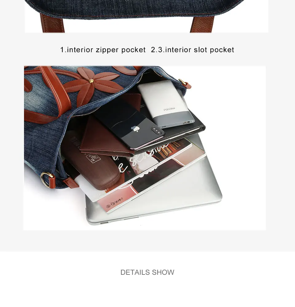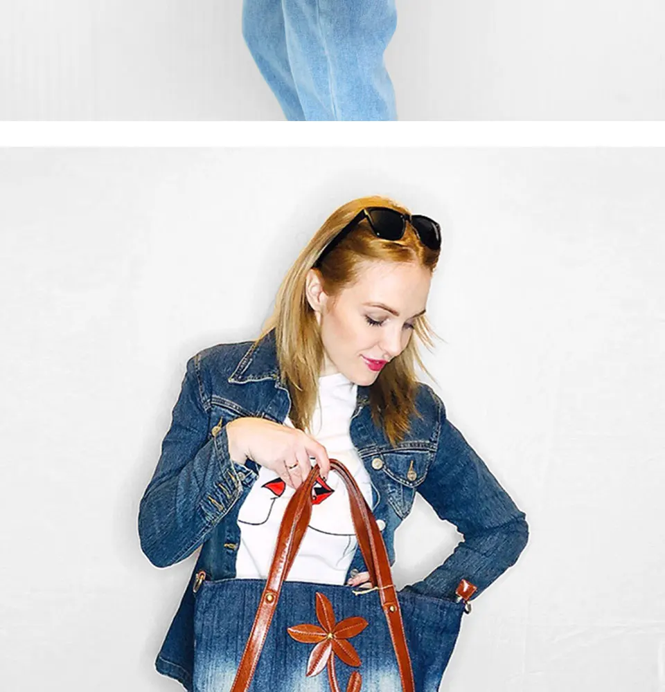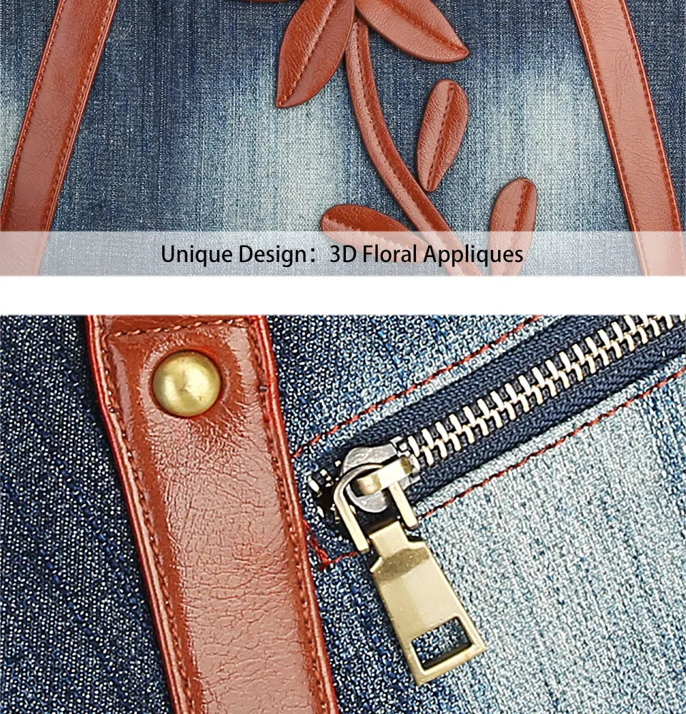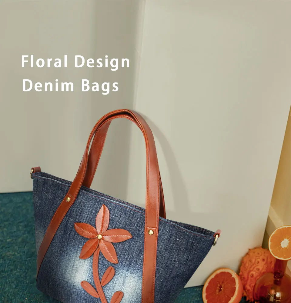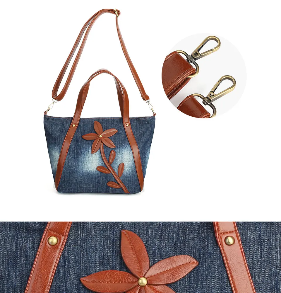 Женская джинсовая сумка-тоут, прочная винтажная дизайнерская сумка через плечо с цветочным принтом, 2019
