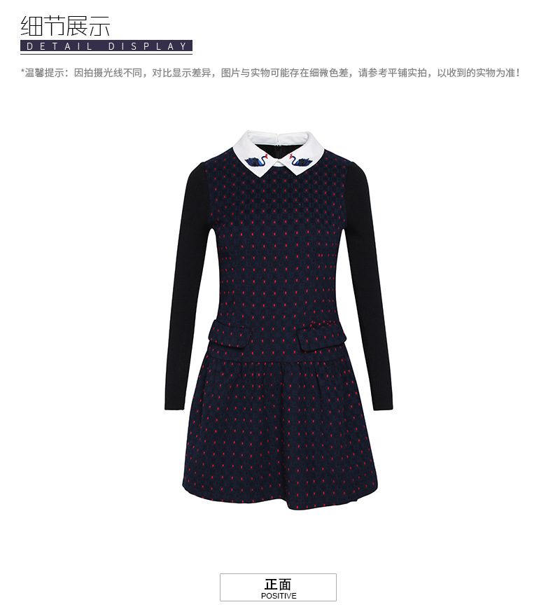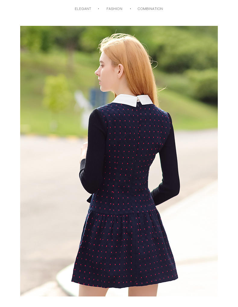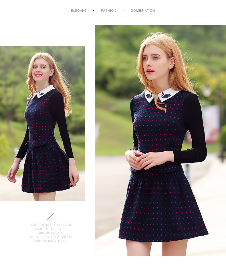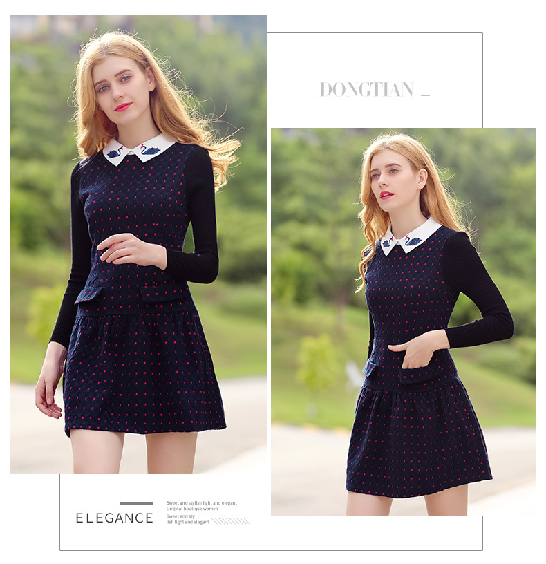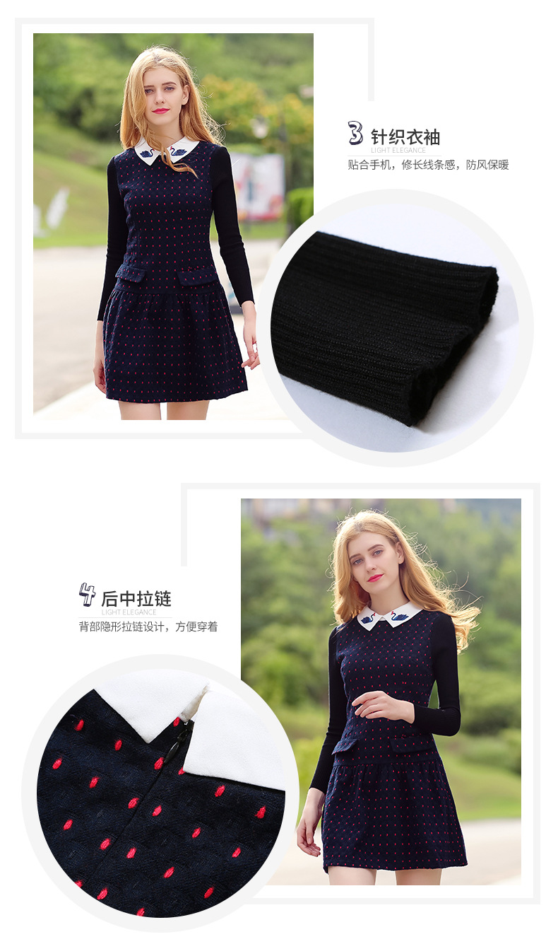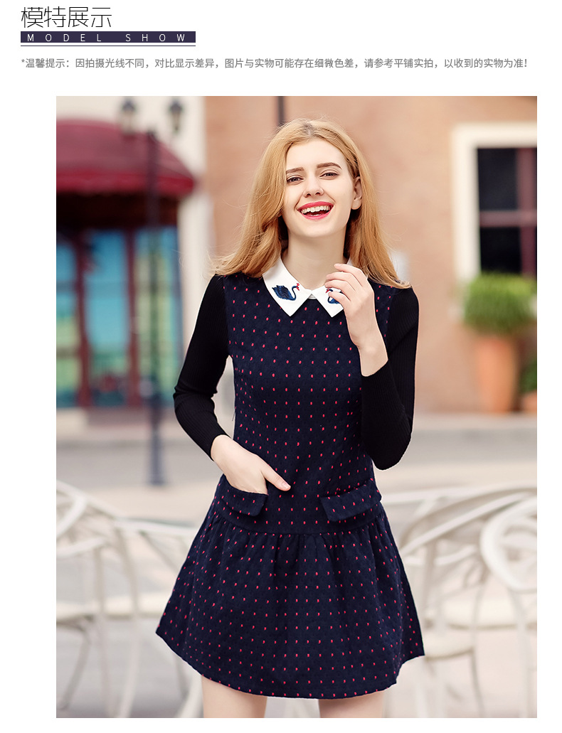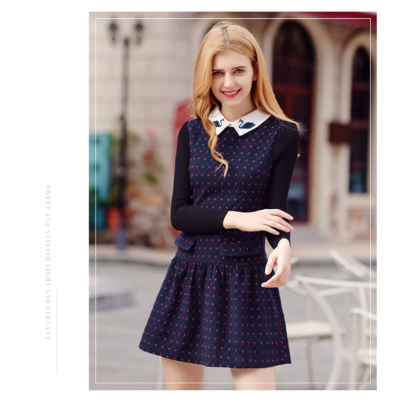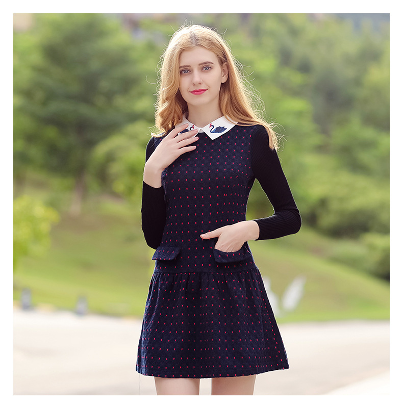 Новое поступление 2017, женские платья, платье для девочек, шерстяное базовое платье в горошек с воротником «Питер Пэн», осенне-зимние платья с вышивкой размера плюс XXL