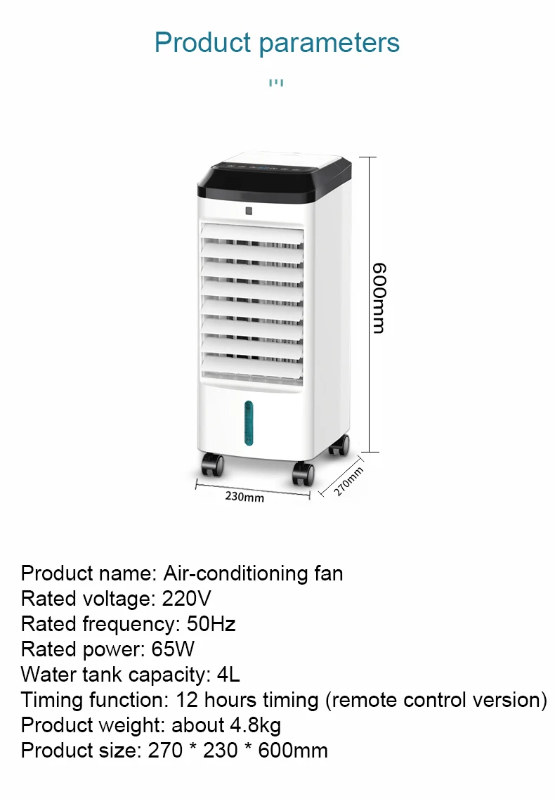 Название продукта: вентилятор кондиционераНоминальное напряжение: 220 ВНоминальная частота: 50 ГцНоминальная мощность: 65 ВтЕмкость резервуара для воды: 4лФункция синхронизации: 12 часов синхронизации (версия дистанционного управления)Вес продукта: около 4,8 кгРазмер продукта: 270*230*600 ммРазмер изделия измеряется вручную, есть некоторые ошибки, пожалуйста, преобладайте в своем роде.Смотрите так же другие товары:
