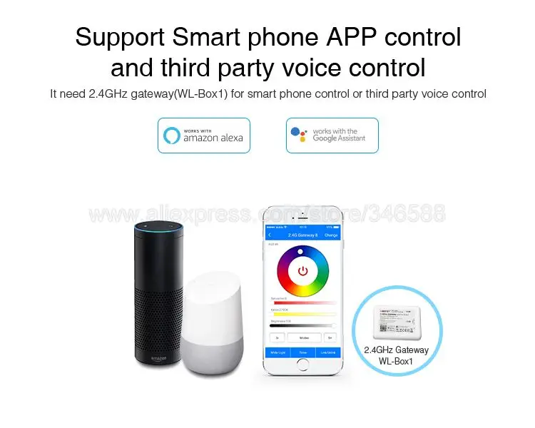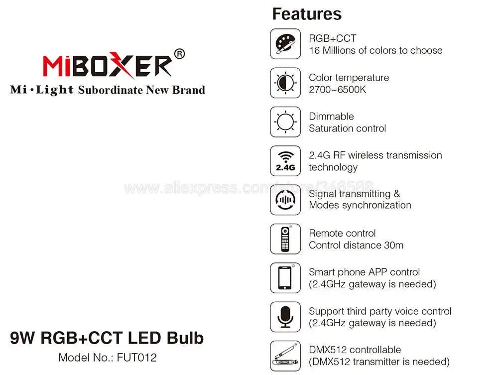 FUT012 RGBCCT лампыТребуется дополнительный пульт Milight RGBCCT, чтобы получить его работу, также можно достичь управления Wi-Fi APP и третьего вечерние голосового управления при использовании с WL-Box1.