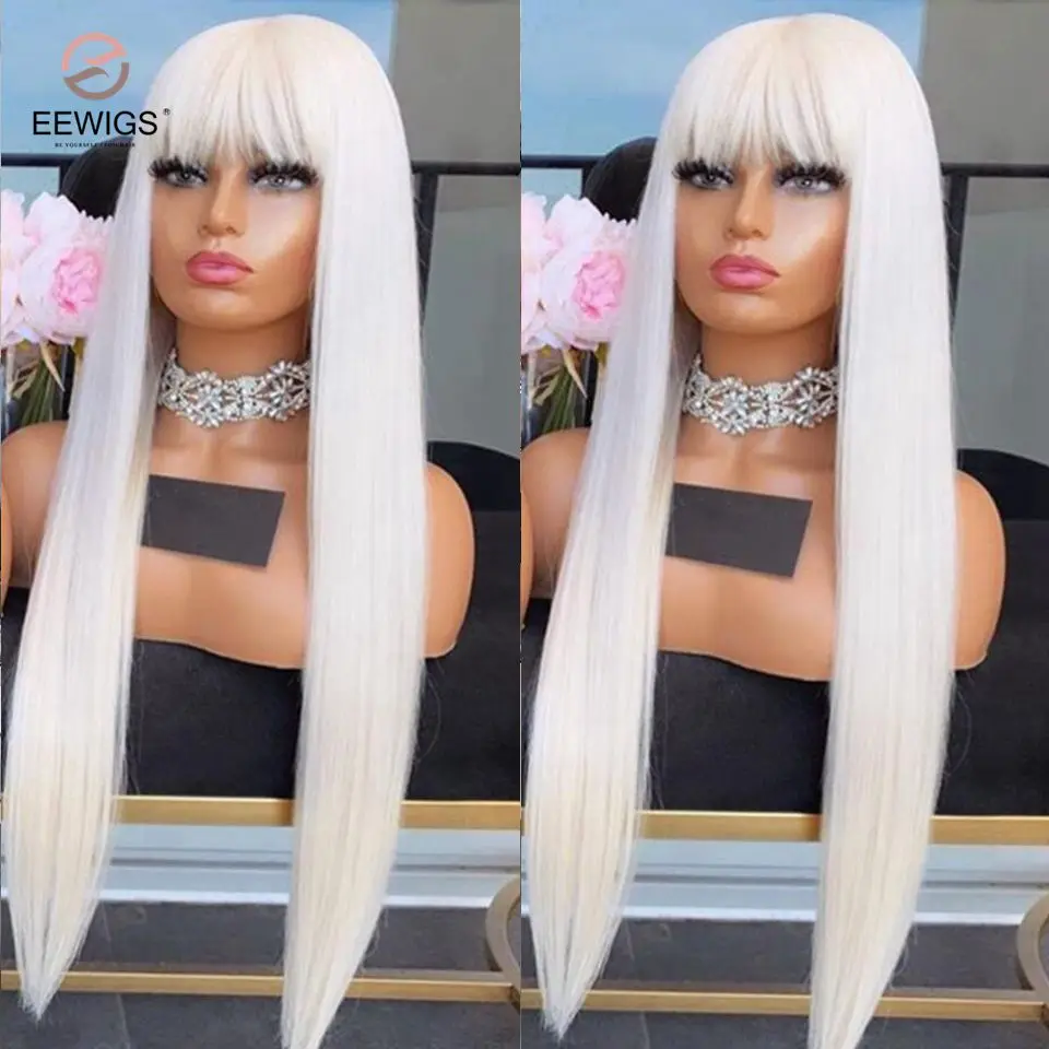 EEWIGS длинный черный парик с челкой платиновый блонд Синтетический