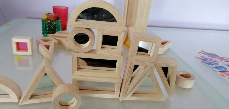 [Детская развивающая игрушка Монтессори деревянные строительные блоки с акриловым зеркалом сенсорная игрушка набор большой размер 24 шт]