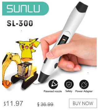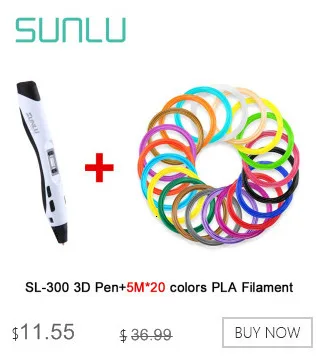 3D Pen SUNLU SL-300 Consumable PLA/ABS Filament with US EU UK adapter 8 Digital Speed Control Enjoy Drawing With Family Specifications: Type: 3D Drawing Pen Brand: SUNLU Model: SL-300A Pen color: Black/White/Blue/Green Pen size:180L*24W*24H mm Input:100V/250V 2A Output:DC 12V 2A 24W Supporting material: ABS,PLA Material diameter: 1.75mm Filament quantity:5M / bag USB cable only Package: 3D Pen*1, Finger Guard*2, Data Cable*1, PCL 3m*2, Manual*1,Adapter*1