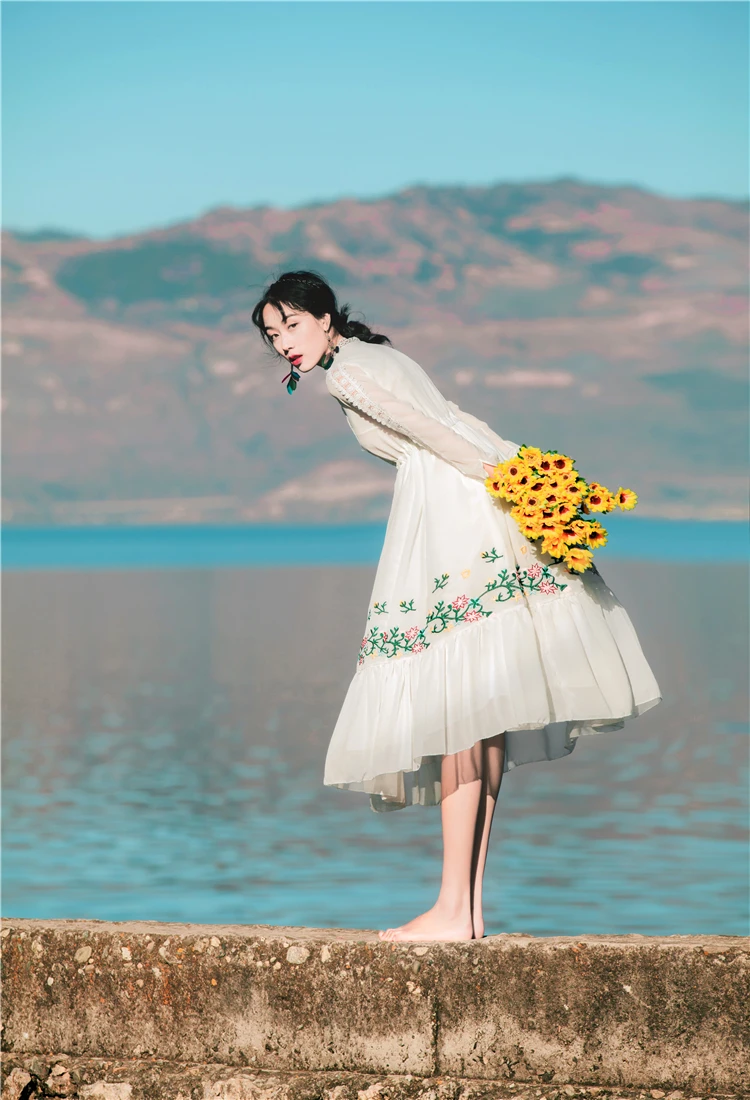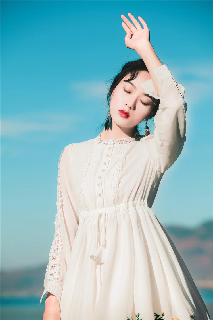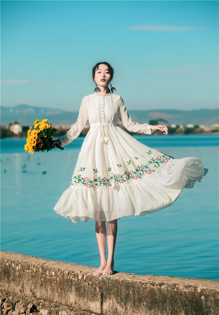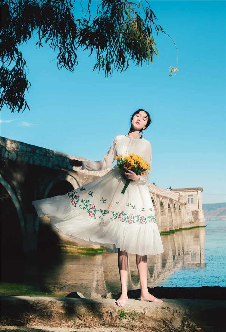 Летнее платье 2020 женское повседневное пляжное шифоновое белое кружевное платье винтажные вечерние платья с цветочной вышивкой Vestidos