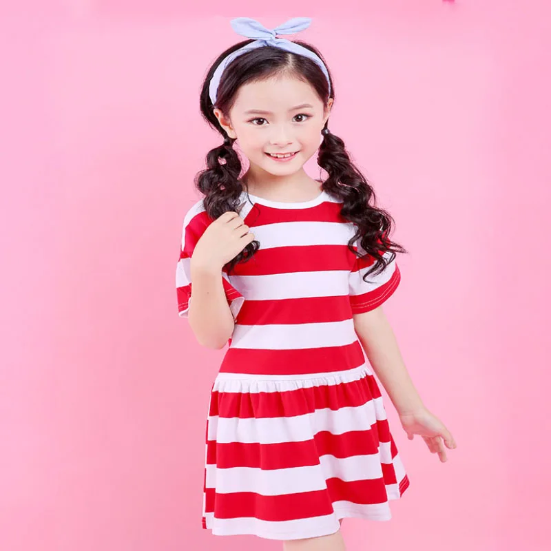 Одежда для девочек; Платье; Хлопковое модное Повседневное платье принцессы в полоску с принтом; От 3 до 8 лет Beibei; Детская одежда высокого качества