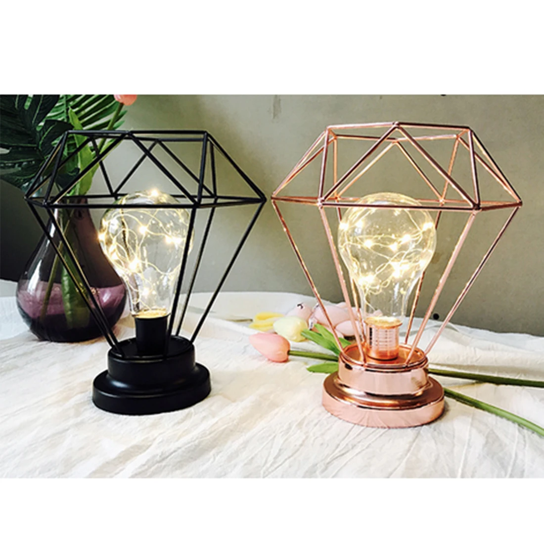 Minimalism Style Creative Modeling Iron Art Night Light Table Top Home Festival Party Decorative Lamp(Battery-powered) - Black Diamond Type
