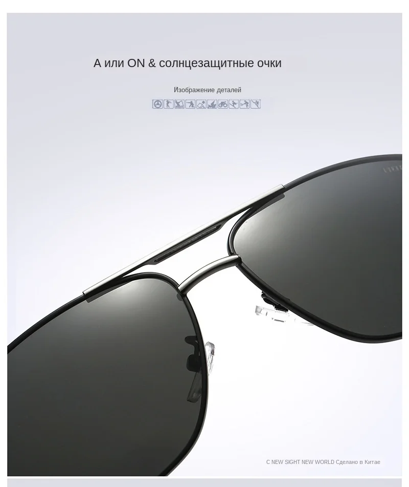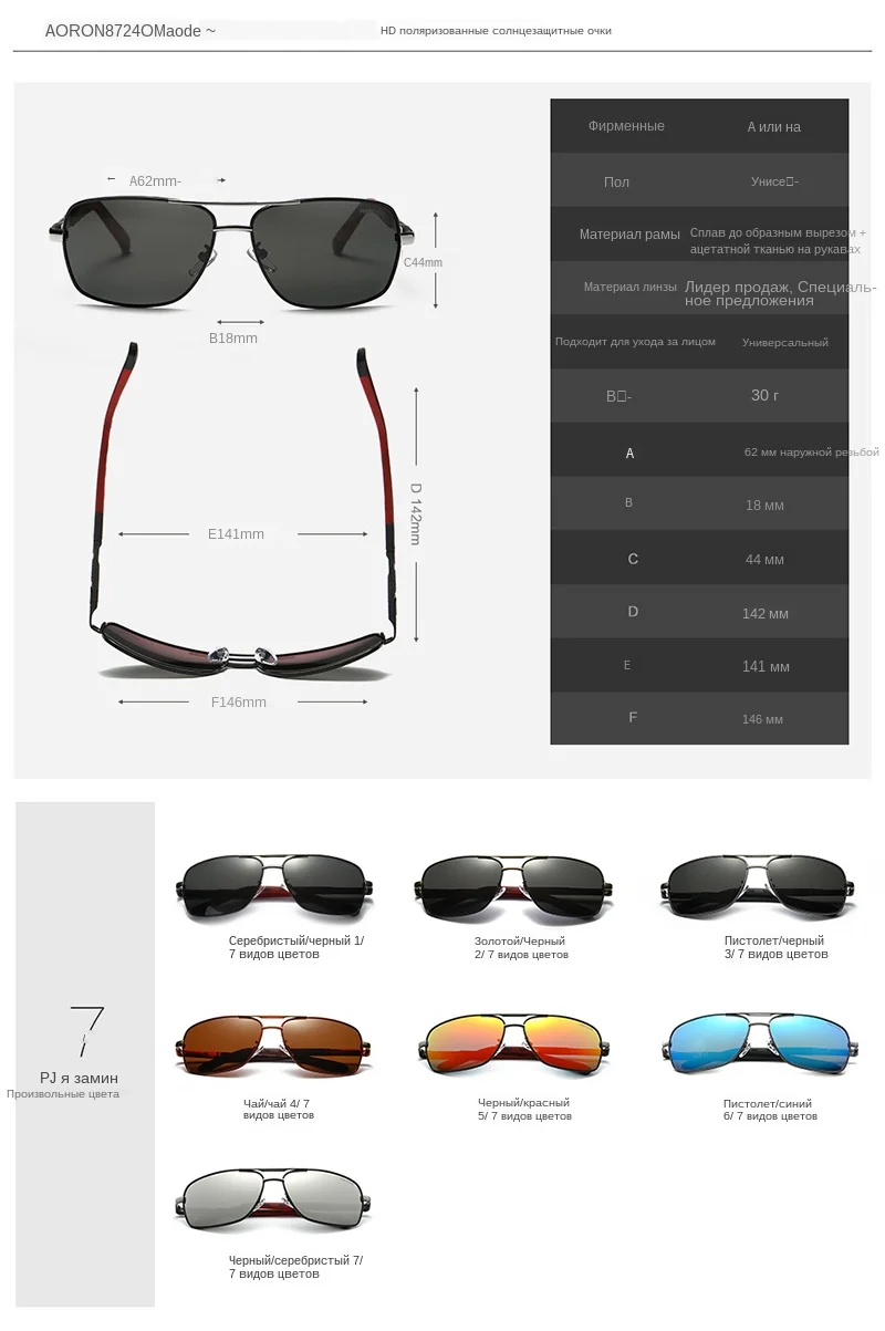 100% новый и высокое качество. Материал линз: поляризованные линзы TAC. Материал оправы: металлический сплав. Видимая перспектива: 99 (%). Уровень защиты от ультрафиолета: 100% защита от ультрафиолета UV400. Поляризация: поляризованные очки. Вес: около 30 г. Ширина линз: около 62 мм. Высота линз: около 44 мм Ширина моста: около 18 мм. Ширина оправы: около 146 мм. Длина ножек: около 142 мм.