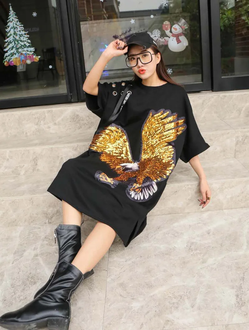 Роскошная футболка большого размера с блестками и орлом; Мини-платье