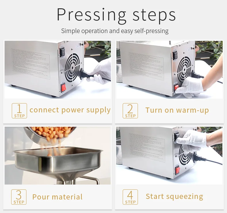 Машина изготовлена из пищевой нержавеющей стали, материал настоящий, тонкая работа, высокая производительность масла, простота в эксплуатации, прочный дизайн в течение 10 лет. Чистое физическое дробление, здоровая и экологичная защита, мы используем высокомощный двигатель промышленного класса brasswire, непрерывная работа в течение 8 часов, три года бесплатной гарантии,ФизическийПресс-это ваш лучший выбор.