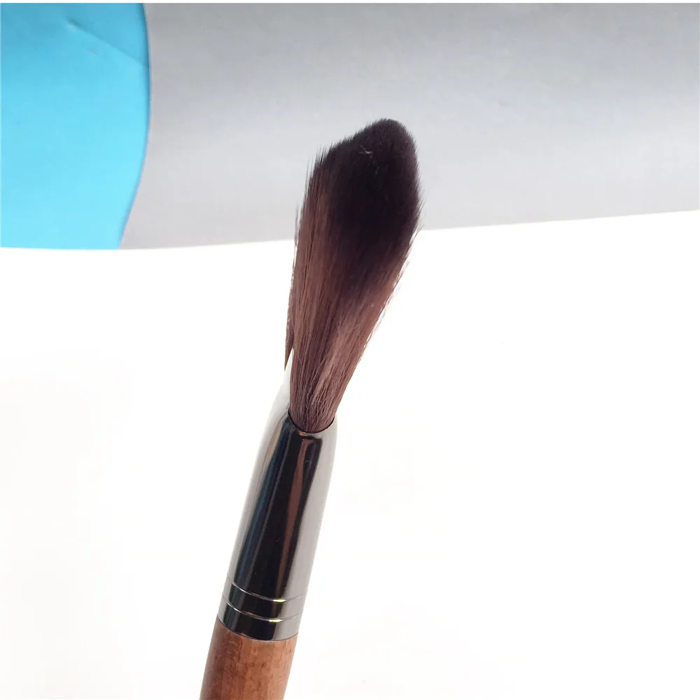 It's a fan-shaped brush with supple bristles inspired by the Middle East. It is most often used to enhance the neckline and illuminate the face by sculpting light and shadows. This large, fan-shaped powder brush with soft, yet firm wavy fibers, can be used to remove excess powder from the face and body. Without pressure, use to powder with products that require heavy application (camouflage makeup), so that they stay in place.