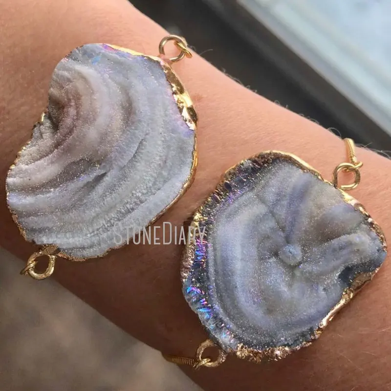 BM11261 Bohemian Galaxy Quartz Chain Bracelet Gold Plating Agates Connector Chain Minimalist Bracelet Gift For Her