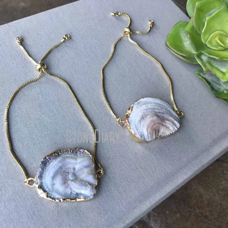 These gorgeous bracelets feature an all natural Galaxy Quartz slice