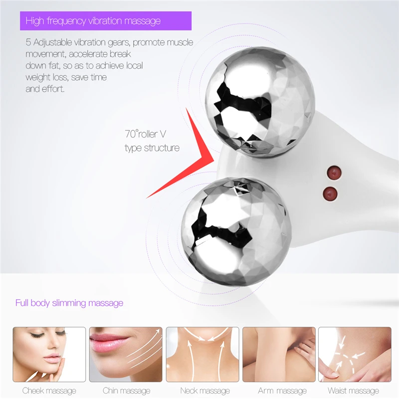 Два y-образных 360 ° массаж с вращением роликовой конструкции: адаптируется к массажу всего тела, например, лица, подбородка, шеи, груди, живота, талии, рук и ног, И обладает уникальным эффектом похудения. Регулируемый высокочастотный Вибрационный массаж: способствует мышечному движению, ускоряет разрыв жира, чтобы достичь локального похудения и формирования, более экономически эффективно, экономит время и усилия. Эффективная микротоковая импульсная техника: цель на дренажные каналы и акупунктурные точки, лимфодренаж, и производит микроволны, стимулирующие глубоко в подкутис и мышцы для восстановления кожи эластичное волокно, глиальные ткани, И уменьшает мелкие морщинки. УФ светодиодный светильник Облучение: способствует регенерации коллагена, убивает бактерии кожи, кроме того, он имеет эффект флуоресцентного обнаружения и может использоваться для обнаружения денег. Умный ЖК-дисплей, легко читает и распознает текущее рабочее состояние. Компактный и легкий, с портативным тканевым мешком, удобно носить с собой в любом месте. Дизайн USB для зарядки, вы можете зарядить его с помощью компьютера, мобильного источника питания и любых других электронных устройств с usb-портом, прост в использовании. После запуска, 20 минут без действия, он автоматически отключится.
