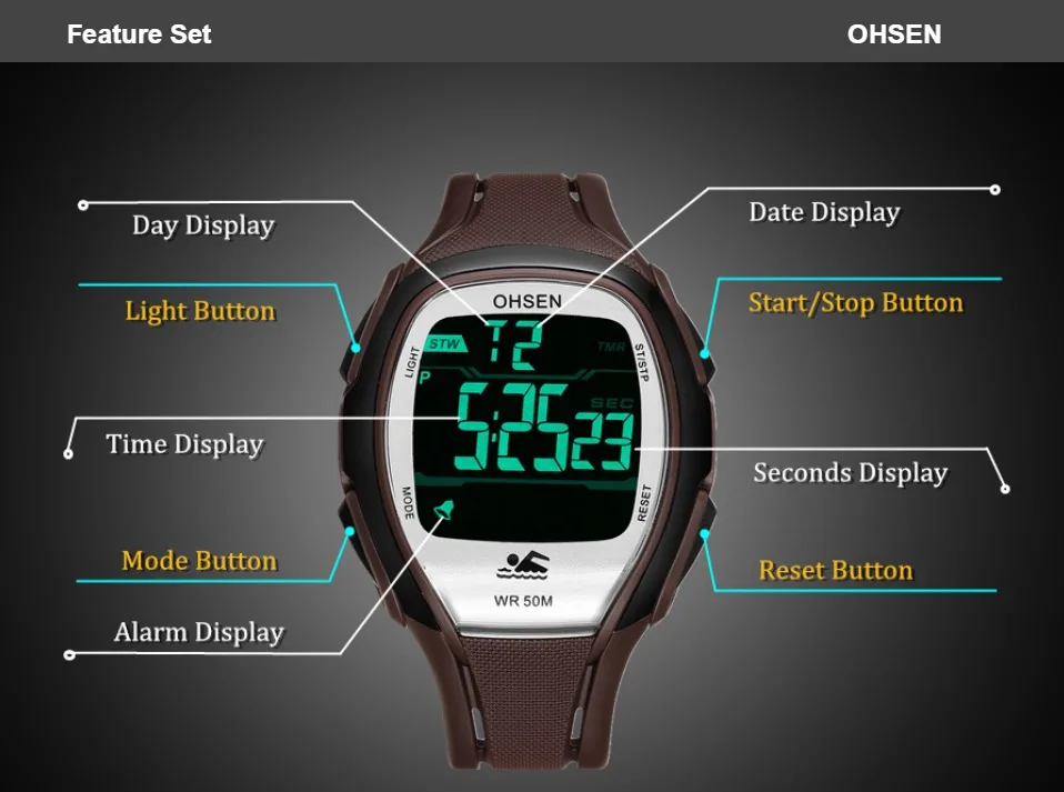 Дополнительная функция ЖК-подсветки для четкого отображения времени в темноте
