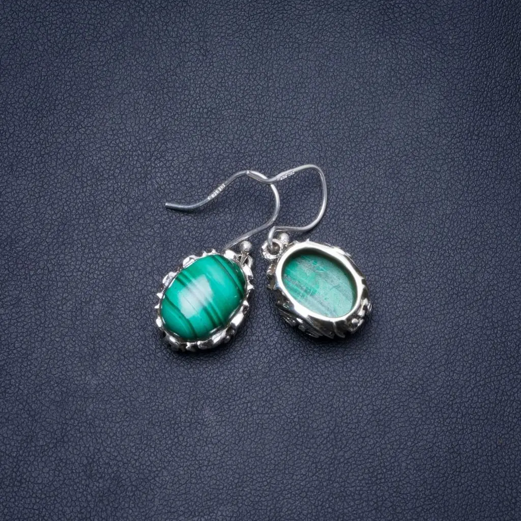 Малахитовые ручной уникальный 925 пробы Серебряные серьги 1,25 " ; Y0359
