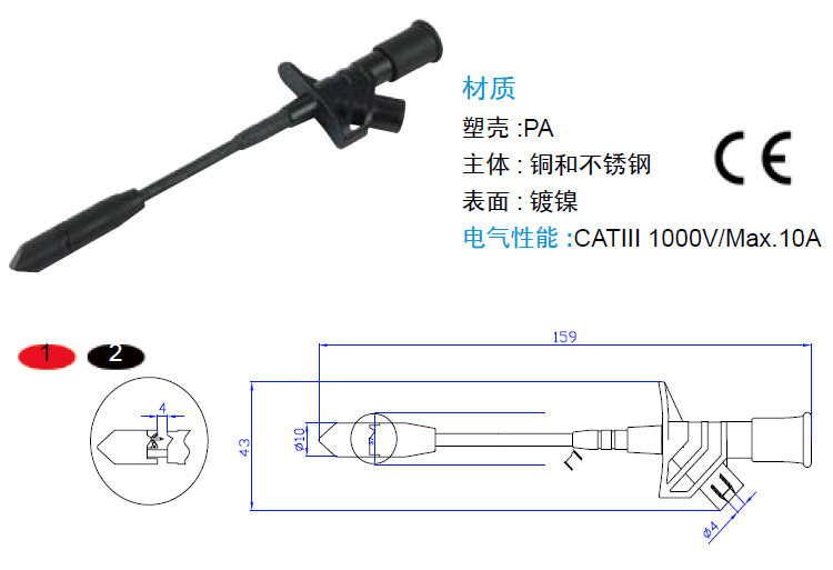 Amass изоляция быстрая неразрушающая неразрывная проволока тестовый зажим тестовый крюк 4 мм банан джек AYG00037