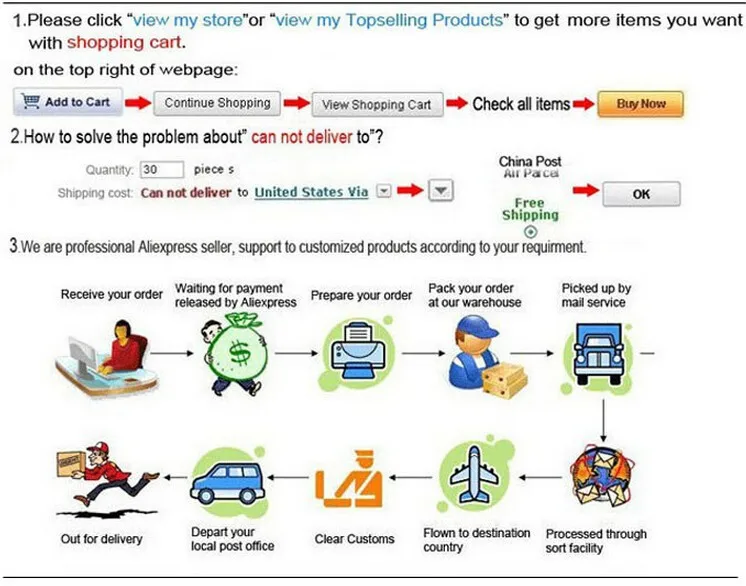 Если вы не получили товар в течение 45 дней после оплаты, Запустите проект «Бесплатная доставка» (Почта Китая), пожалуйста, свяжитесь с нами. Мы Отследим товар и ответим вам при первой возможности. Наша цель-удовлетворение клиентов. Статус и время на складе отличаются, мы выберем ваш проект для быстрой доставки.