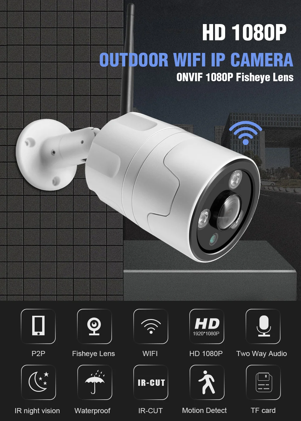 Наружная WIFI IP камера ONVIF 1080P Рыбий глаз объектив 180 градусов обзор безопасности Пуля день/ночь вид дома CCTV камеры наблюдения