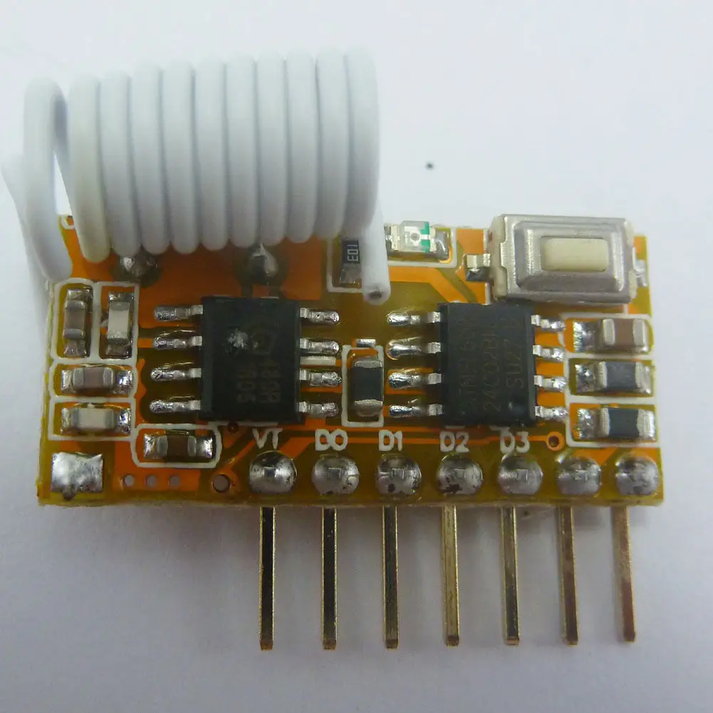 Рабочая цена | Супер гетеродинный приемник с декодером, тип обучения. Декодирование PT2262, PT2260, PT2240, EV1527 и другие Обучающие чипы codeto или совместимые чипы, можно научиться и хранить 20 шт. различных кодированных пультов дистанционного управления. Разумно различать ударопрочность между фиксированным кодом и кодом обучения, например PT2262 и EV1527. |