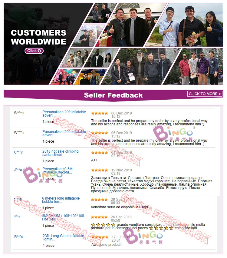 Магазина bingoinflatables работает с 06.11.2014. его рейтинг составлет 87.8 баллов из 100. В избранное добавили 1958 покупателя. Средний рейтинг торваров продавца 4.5 в продаже представленно 1443 наименований товаров, успешно доставлено 56 заказов. 82 покупателей оставили отзывы о продавце.