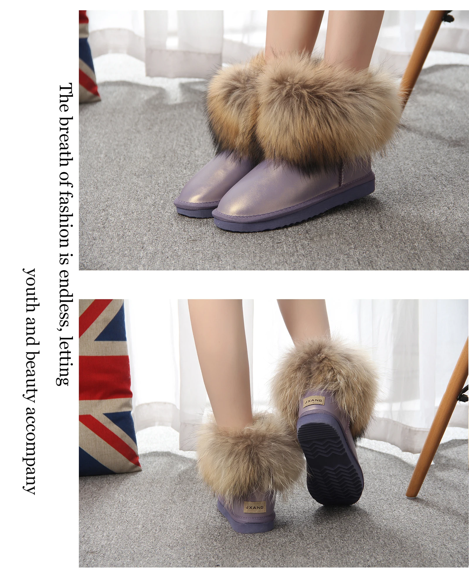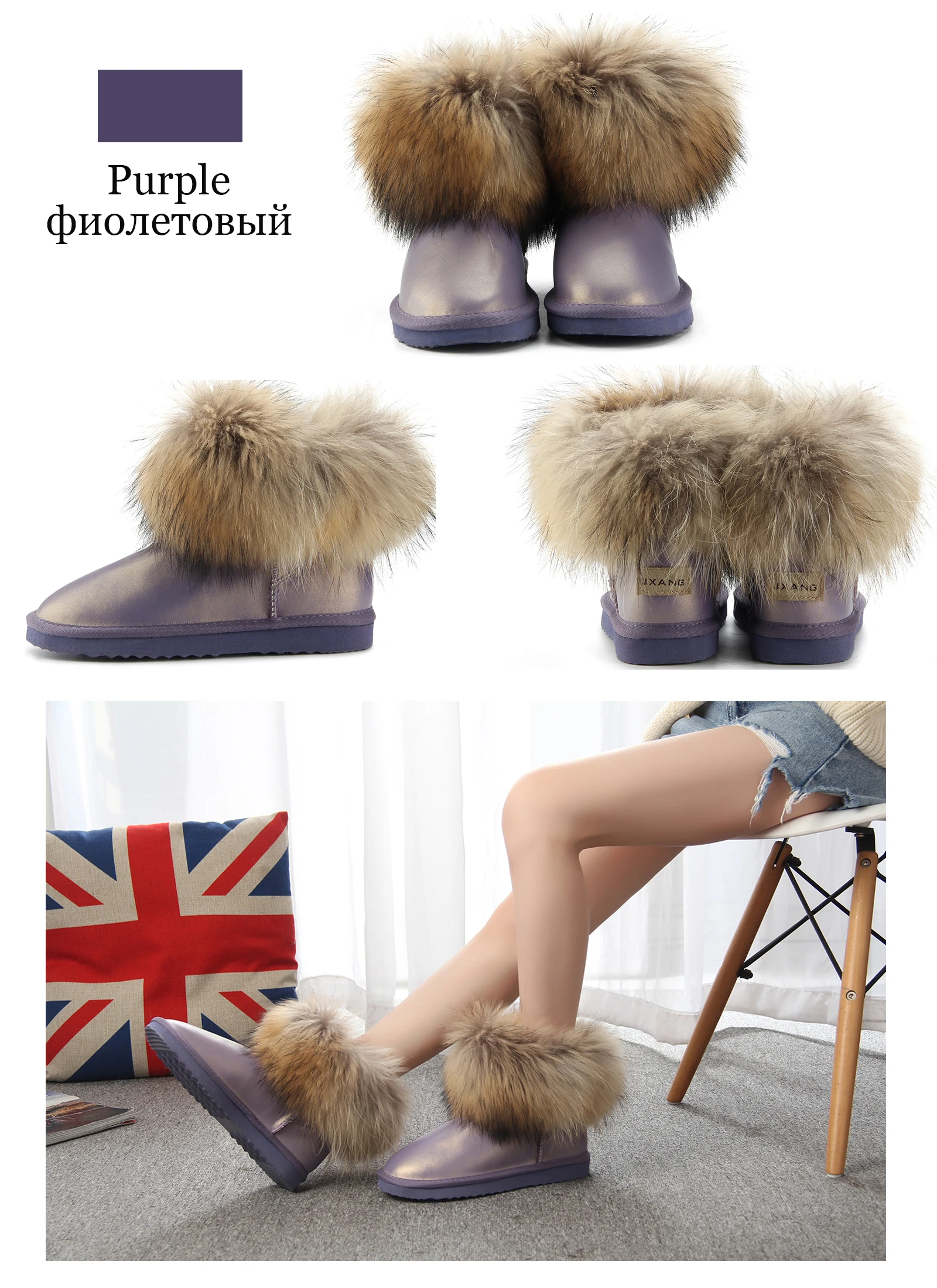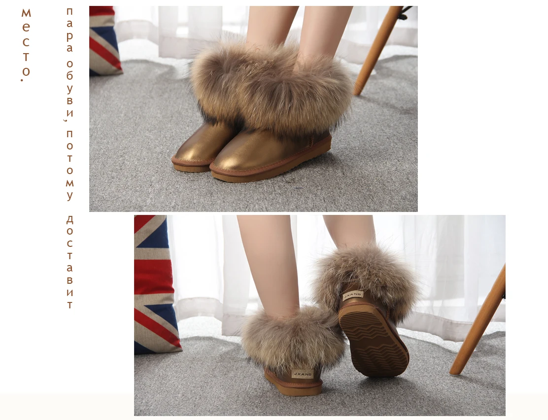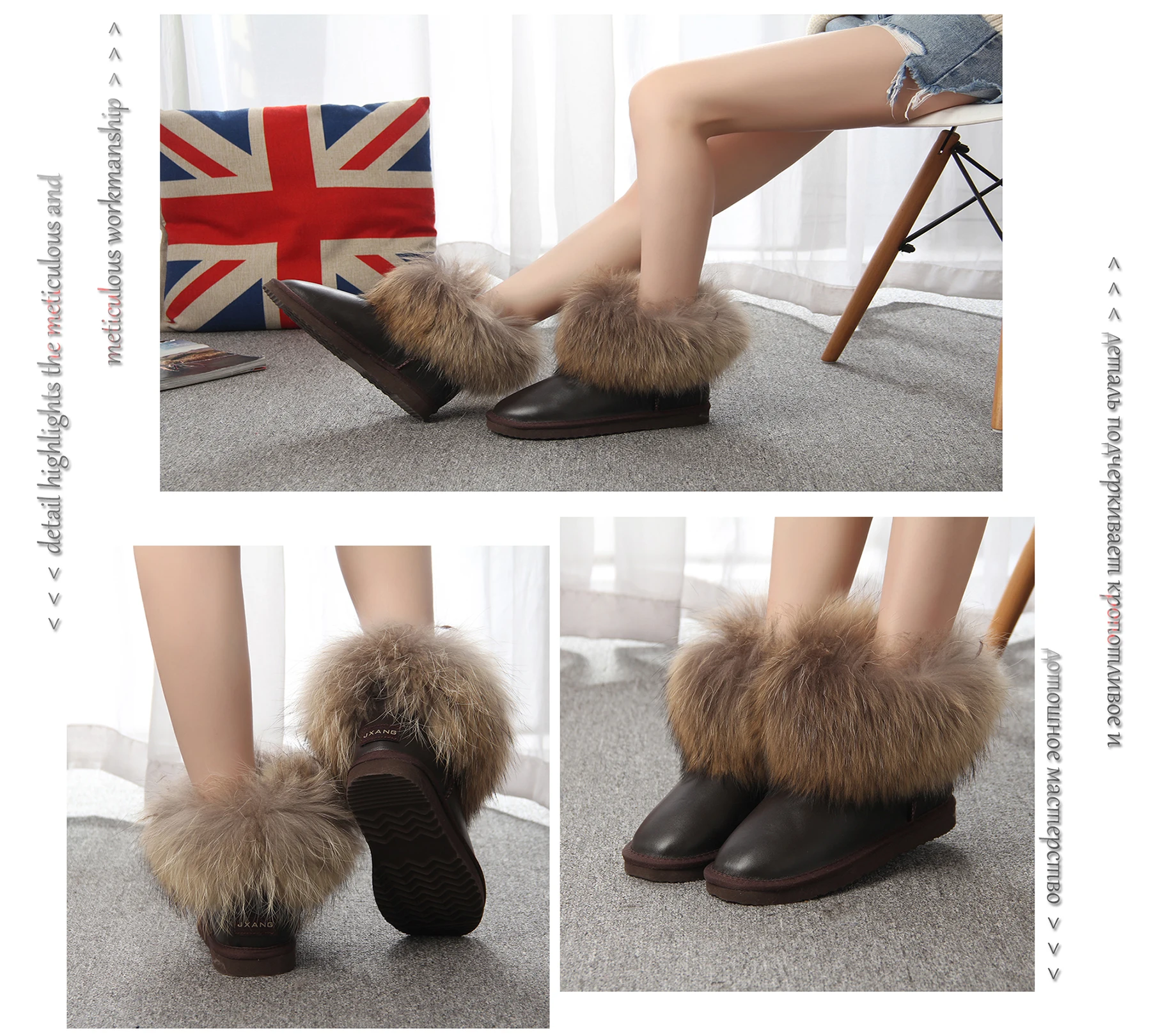 Модные теплые осенне зимние женские ботинки на танкетке с лисьим мехом