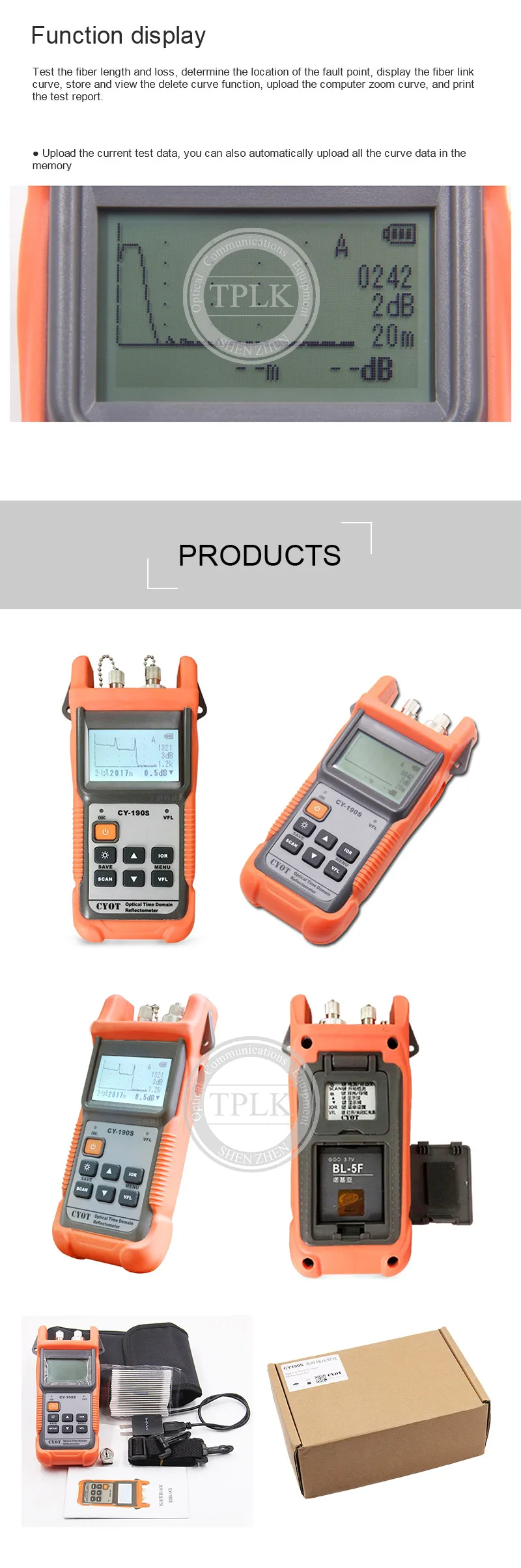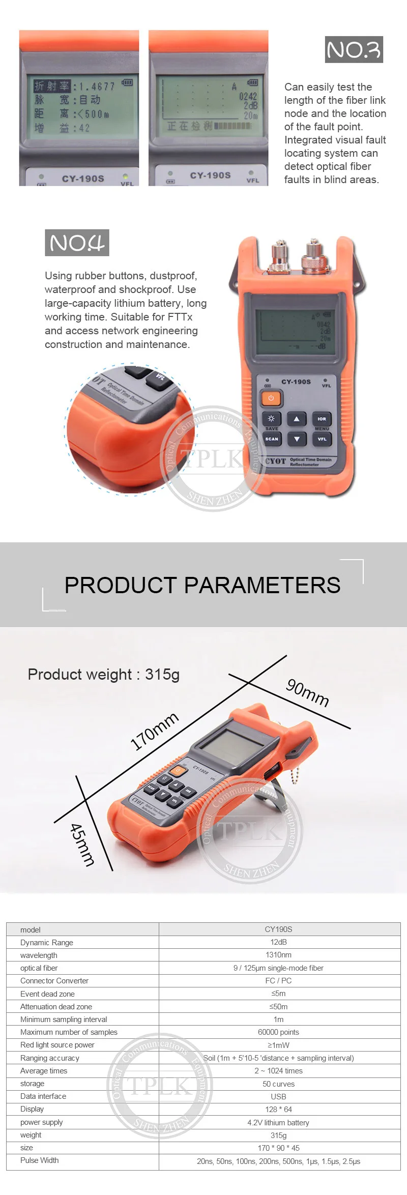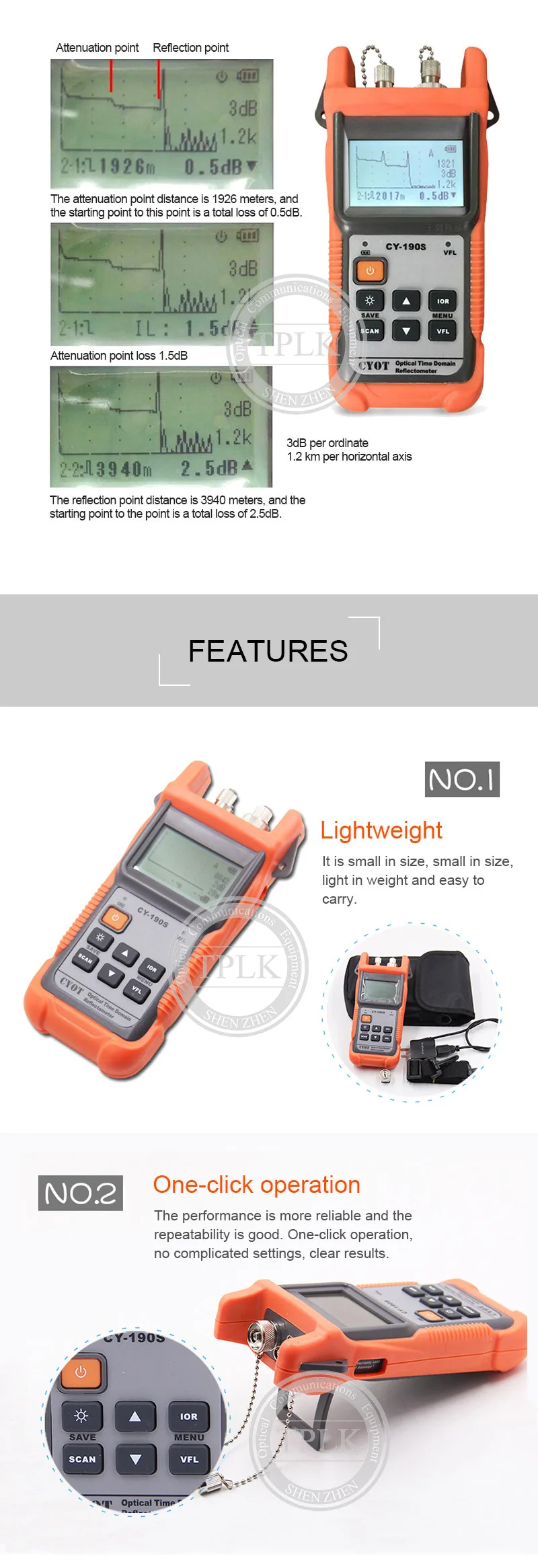 Ручной CY-190S OTDR Оптический измеритель коэффициента отражения методом временных интервалов 60 км SM