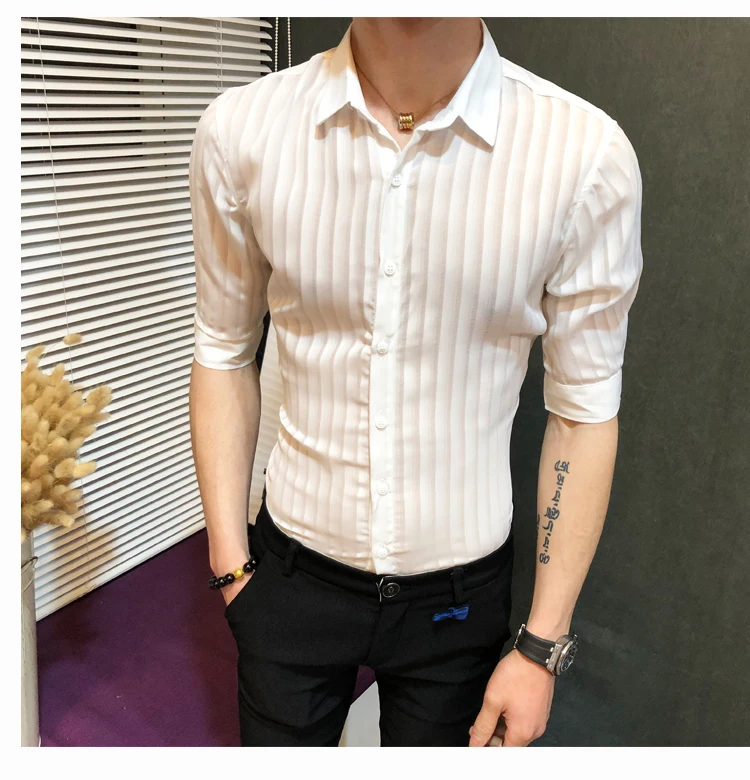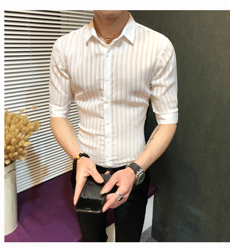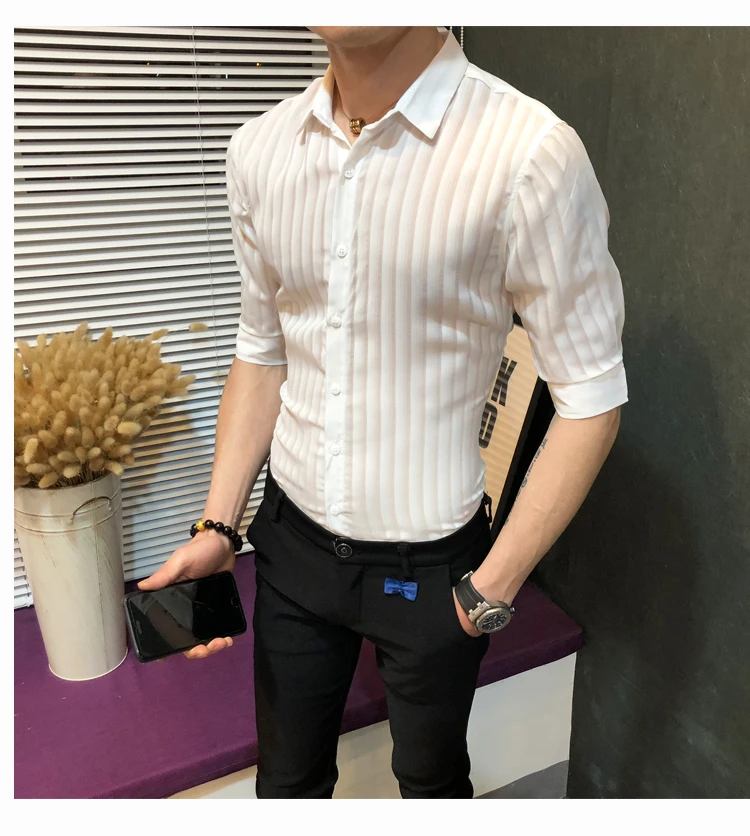 Рубашка мужская с коротким рукавом дышащая эластичная сорочка из бамбукового
