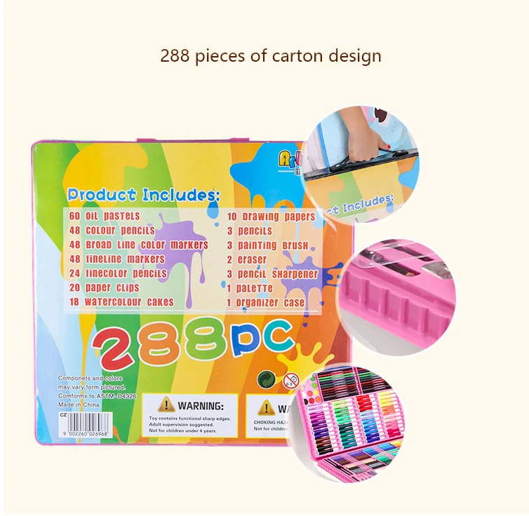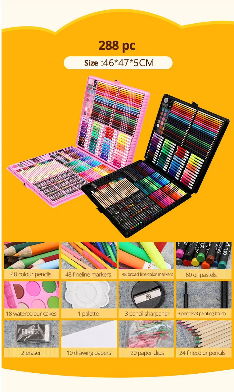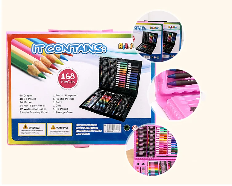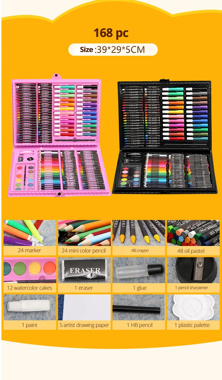 Набор для рисования детский из 106 предметов цветные ручки мелки с искусственным
