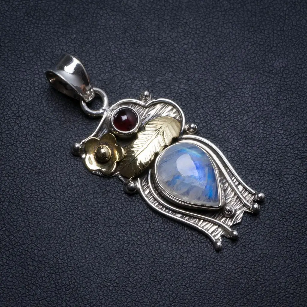Натуральный цвет радуги лунный камень и Аметист ручной работы уникальный 925 пробы серебро кулон 1,75 " ; X1424