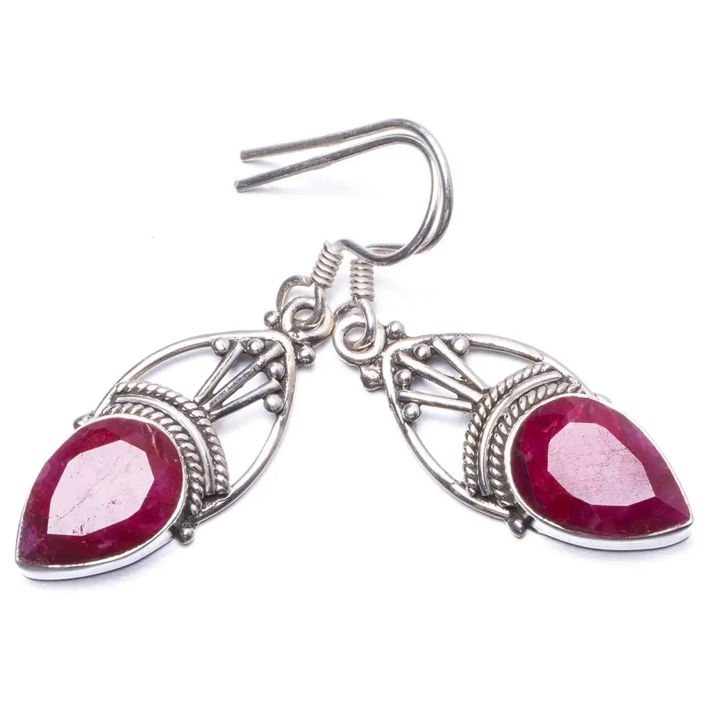 Natural Simulated Cherry Ruby Handmade Unique 925 Sterling Silver Earrings 1.5" ; Y1504