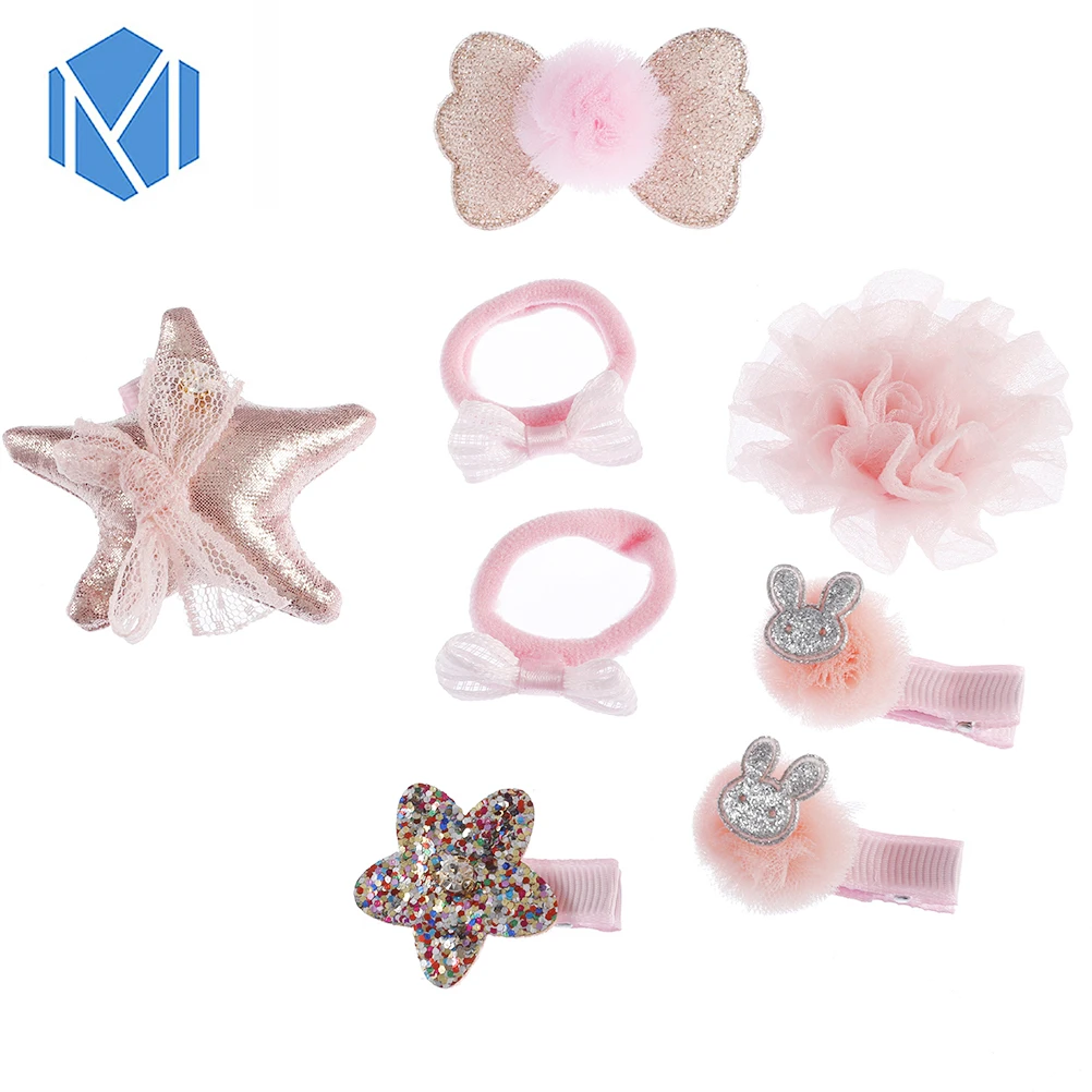 M MISM заколки для волос, подарочный набор для девочек, заколки для волос с бантиками, милые животные, Детские аксессуары для волос, Банни, слон, эластичные резинки